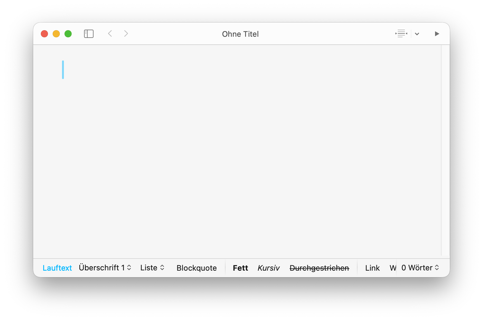 Für das Schreiben von Markdown-Dokumenten verwende ich meistens iA Writer. Diese macOS-App zeichnet sich durch seinen minimalistischen Ansatz aus, was gut zu Markdown passt, schließlich geht es bei dieser Auszeichnungssprache darum, Texte minimalistisch zu verfassen. Der Editor ist ein (fast) leeres Fenster. Ohne etwaige störende Elemente kann man sich so gut auf den Text konzentrieren.